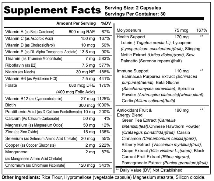 With: Vitamin A · Vitamin C · Vitamin D · Vitamin E · B-Complex (B6, B12, Folate) · Zinc · Magnesium