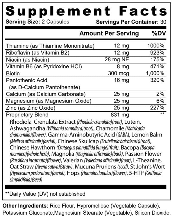 L-Theanine · Ashwagandha · Chamomile · Lemon Balm · 5-HTP