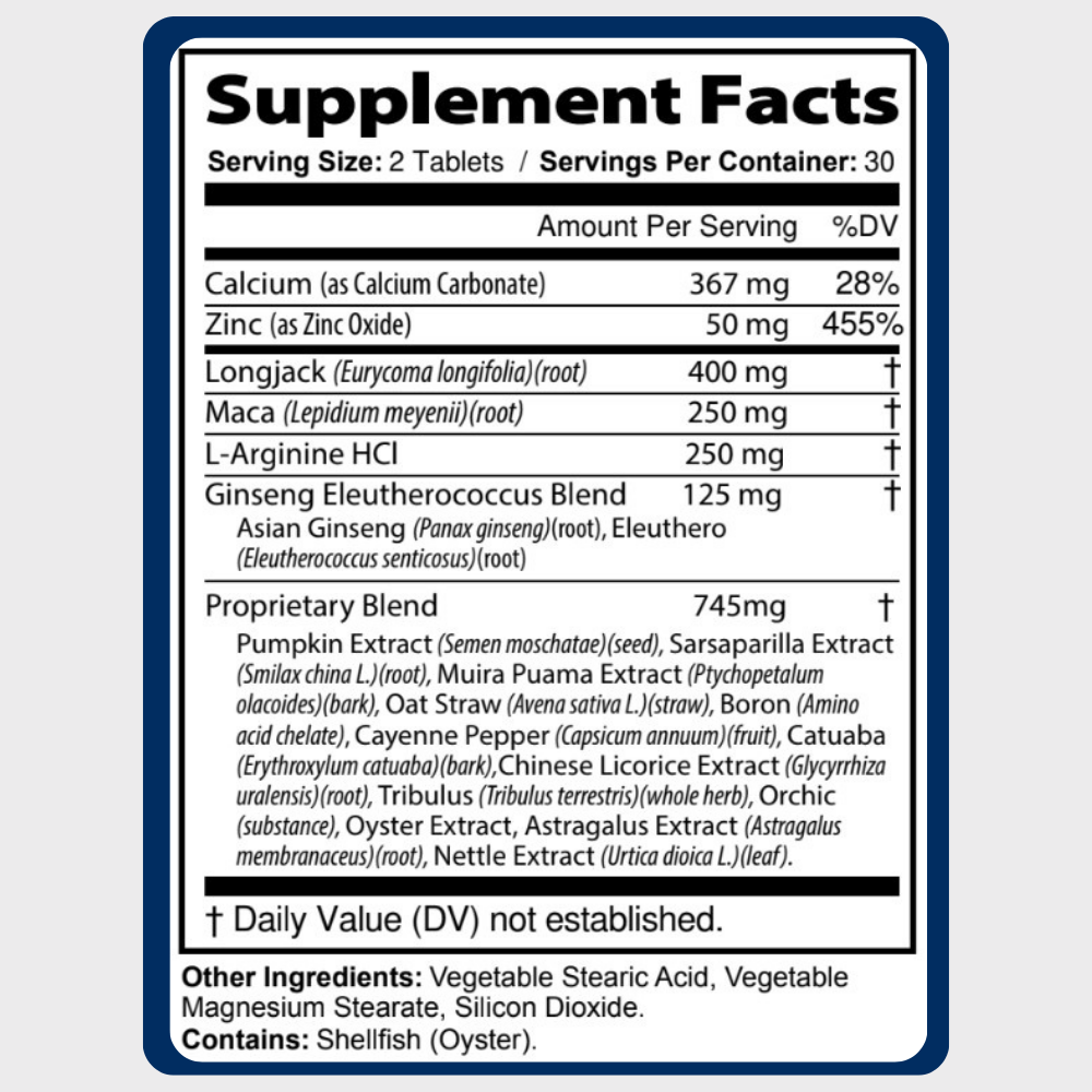Longjack (Tongkat Ali) · Maca · L-Arginine · Ginseng Blend